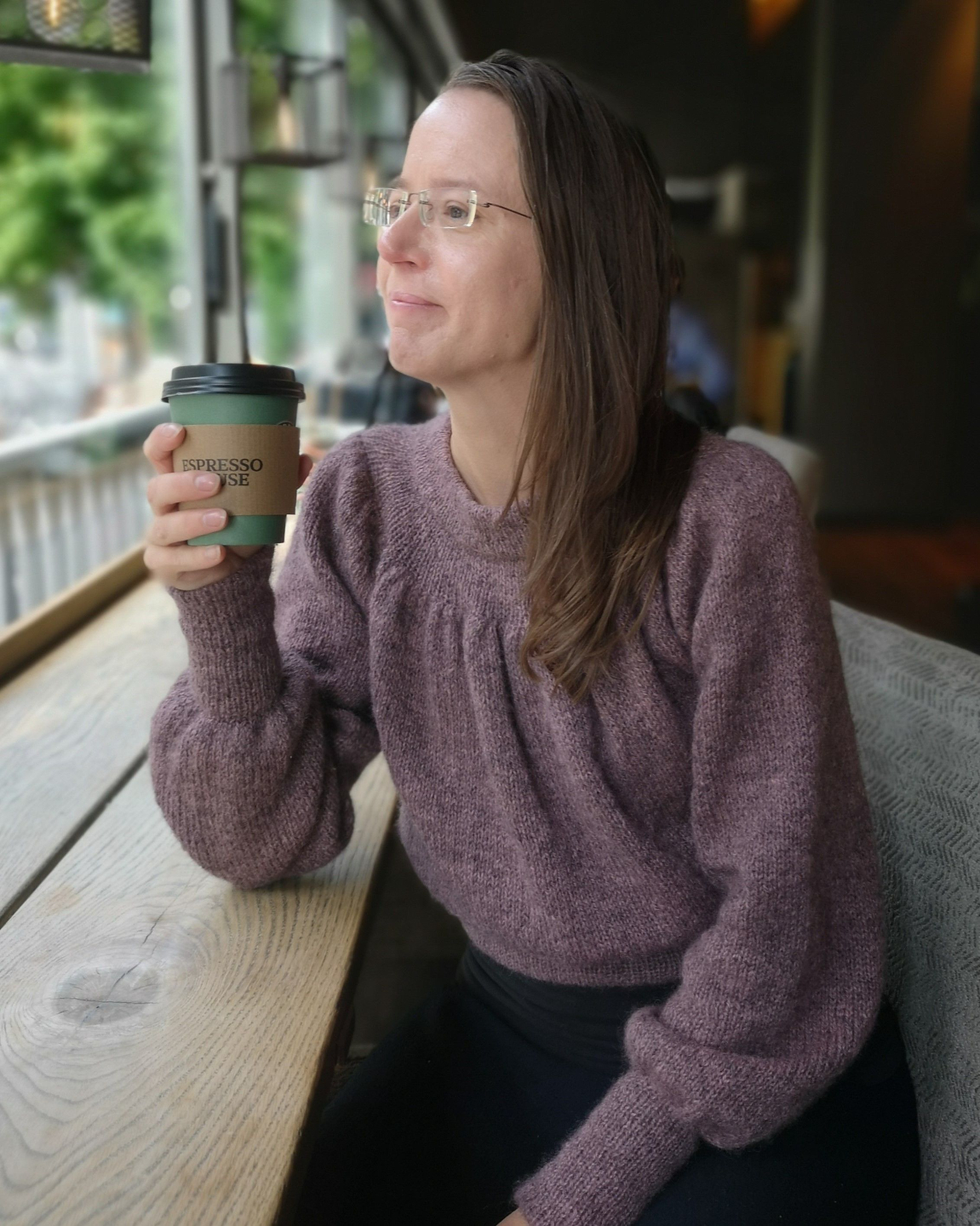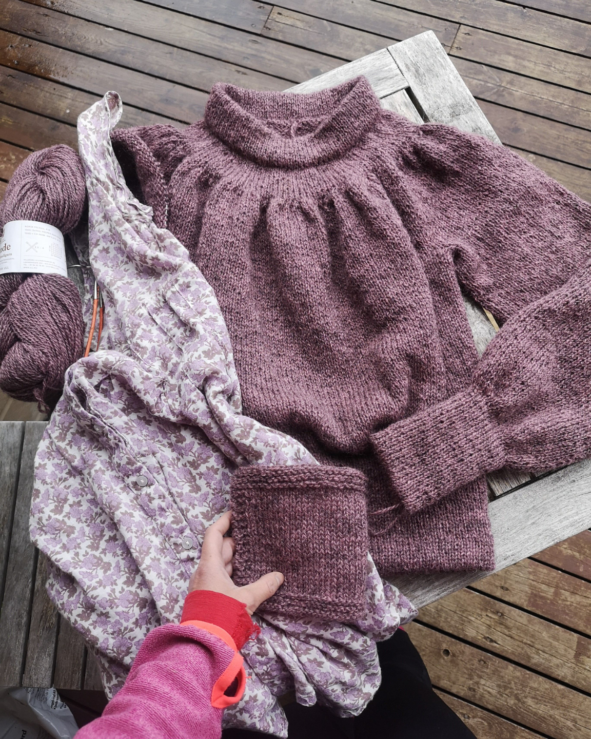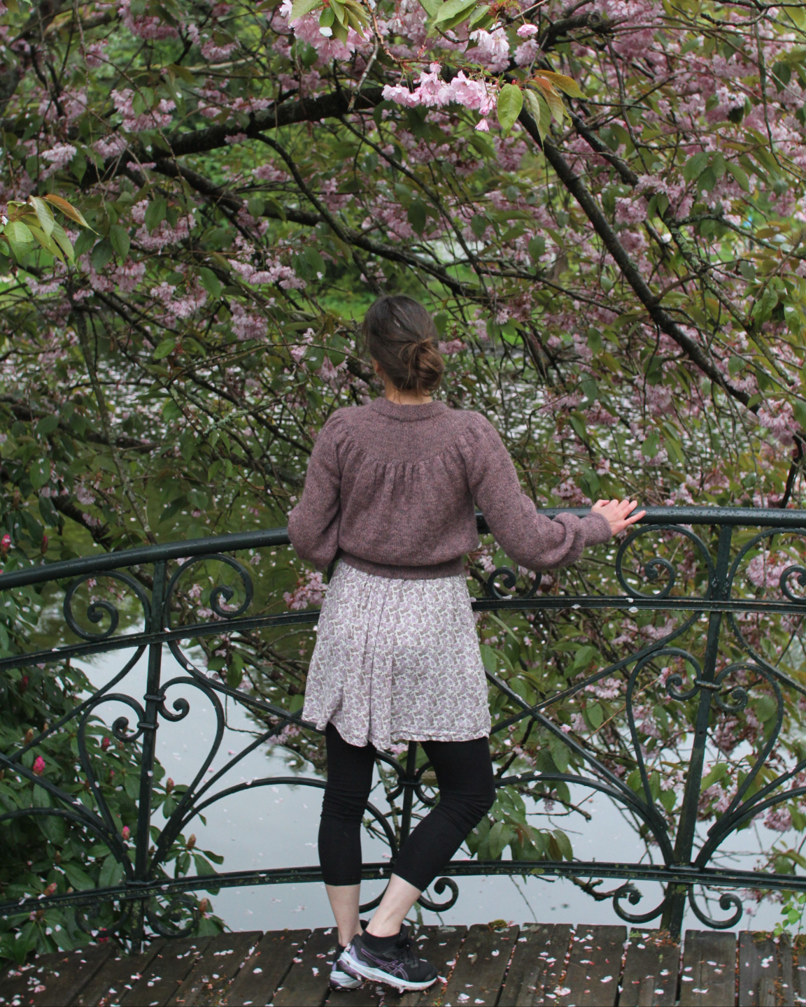 PS. Det hører med til historien at Frøken Tinde Pelsull i lys grålilla ble speedstrikka i mai 2023 for å rekke fotoshoot under blomstringa av kirsebærtræne. Vi rakk det aaaaakkurat i tide til å kjøre fotoshoot i Nygårdsparken i øsregn 12. mai. Dagen etter var trærne avblomstra.